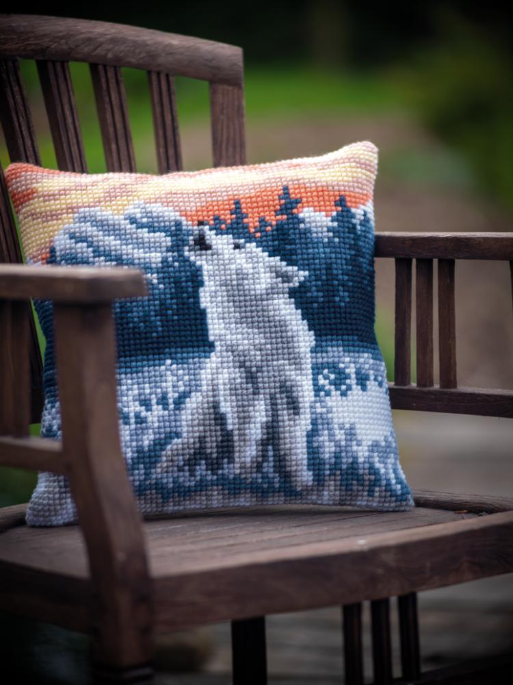 Cushion Cross Stitch Kit ~ Wolf in Winter