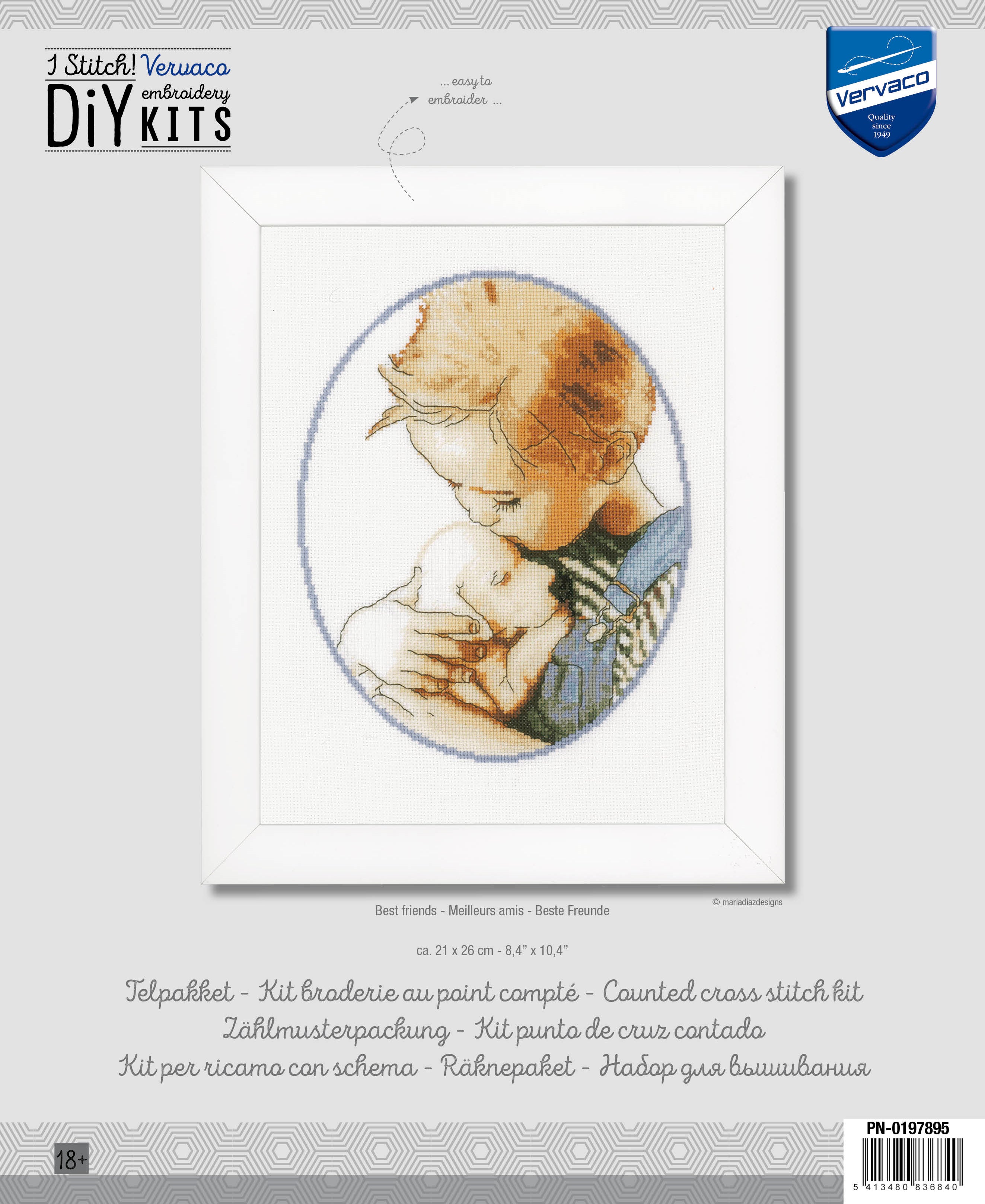 - Kit includes: Kit includes: hand painted, cotton, ecru, large hole canvas; thick acrylic yarn; needle; 'i Stitch by Vervaco' label; frontsheet picture and instructions in 8 languages (EN, NL, FR, GER, IT, SP, RU, SW).