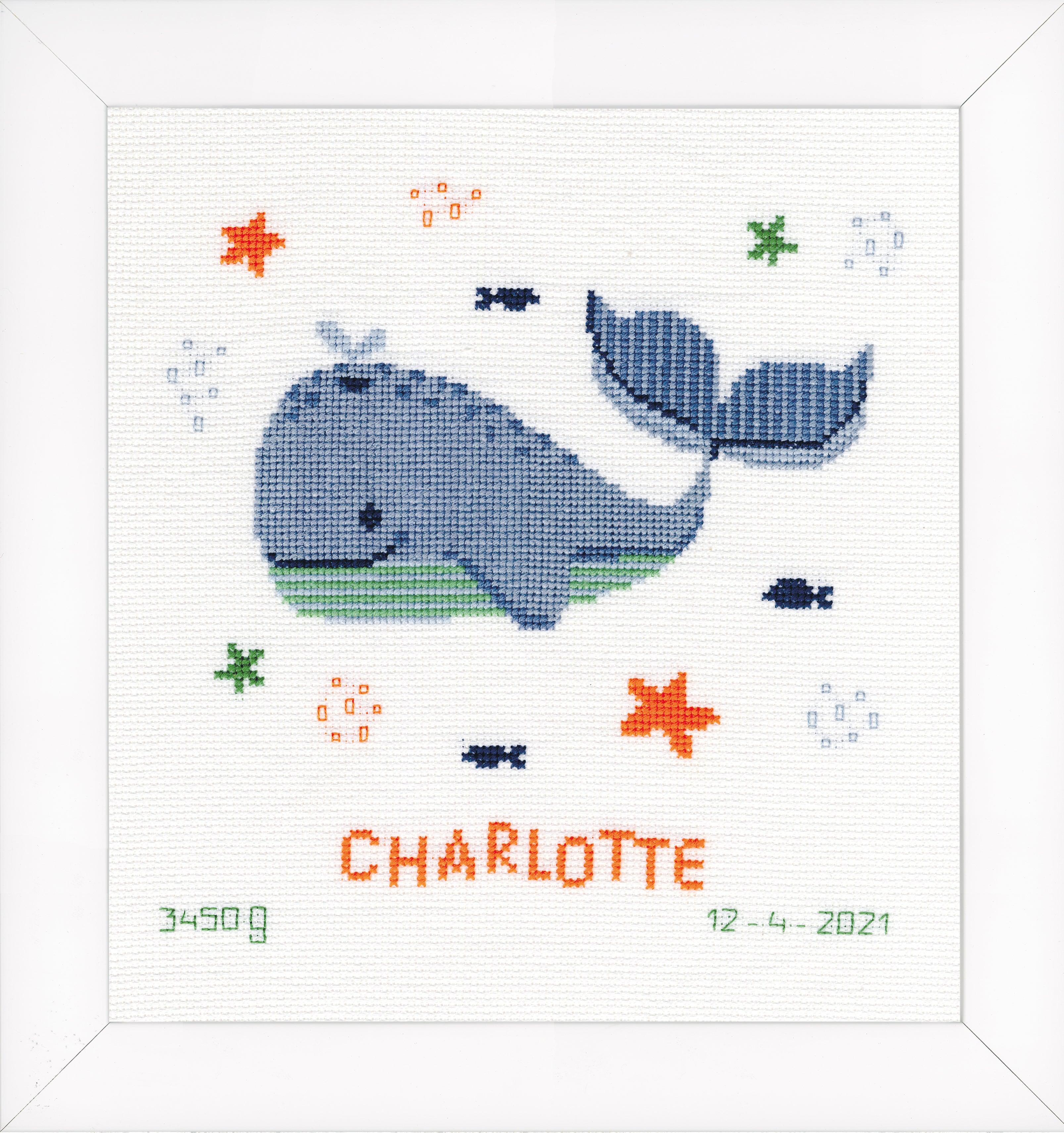 Counted Cross Stitch Kit ~ Birth Record Whales Fun