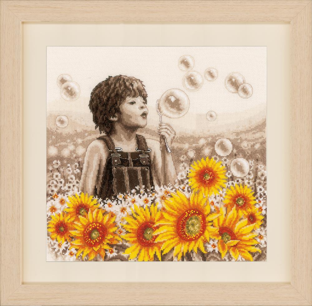 Counted Cross Stitch Kit ~ Boy with Sunflowers