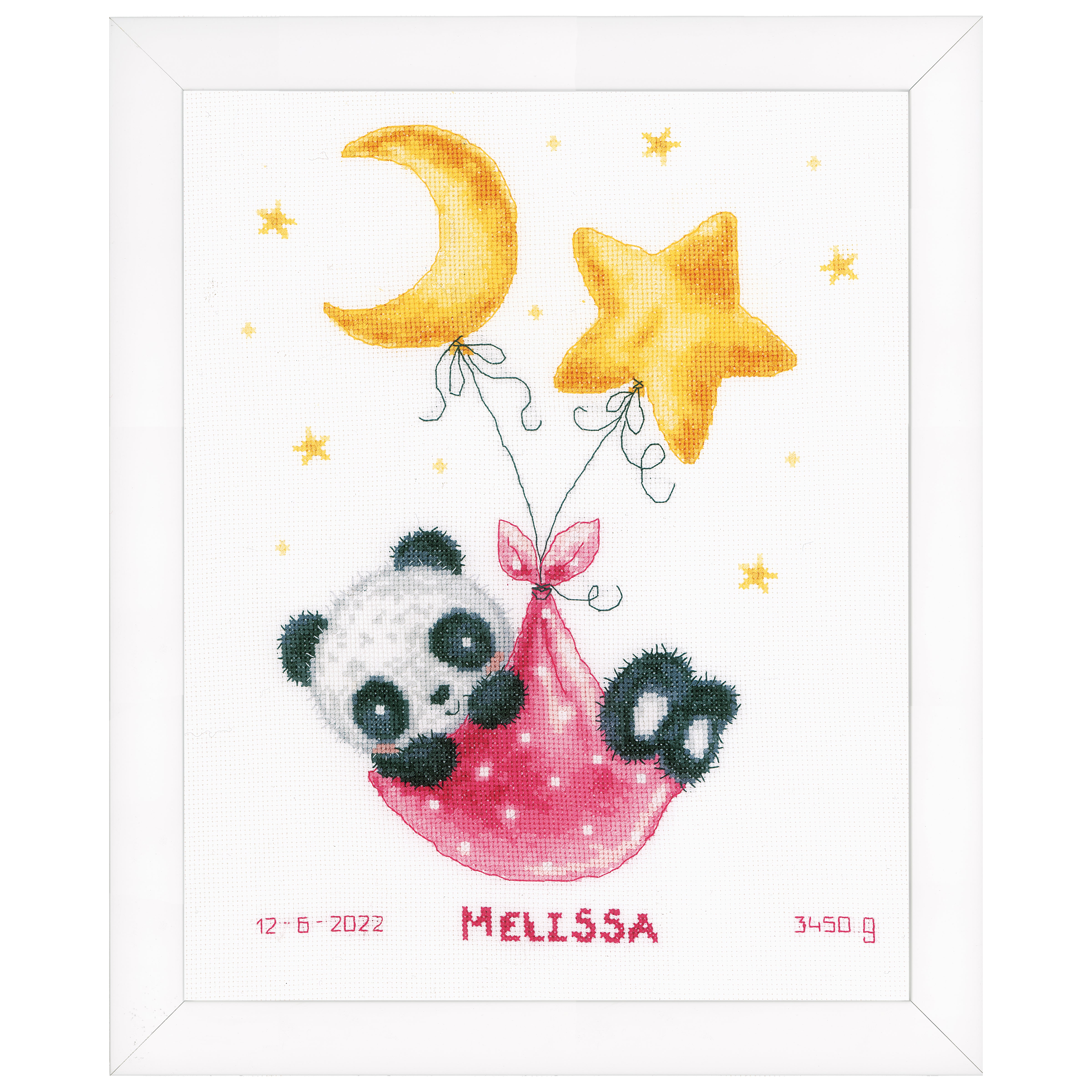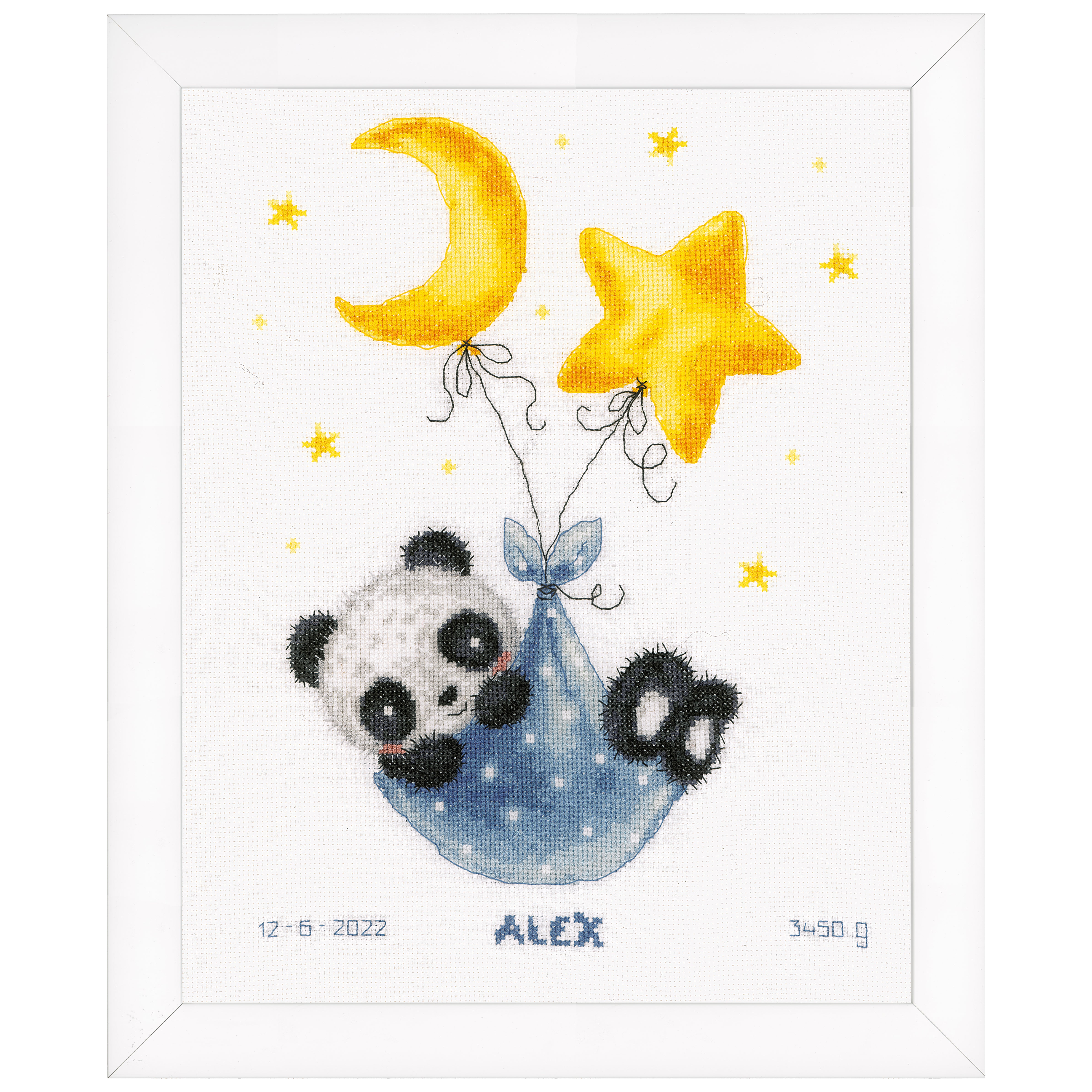 Counted Cross Stitch Kit Birth Record ~ Panda Bear Goes to Sleep