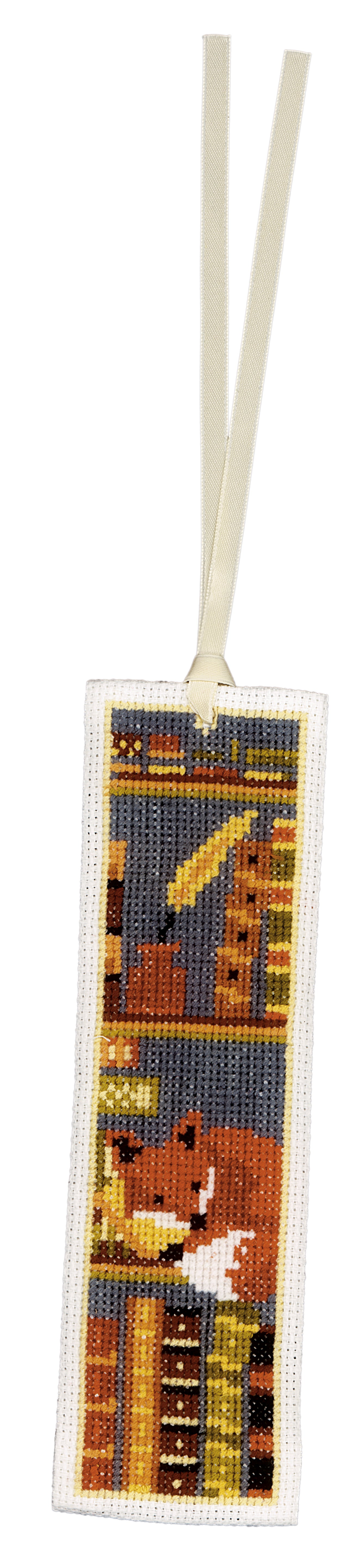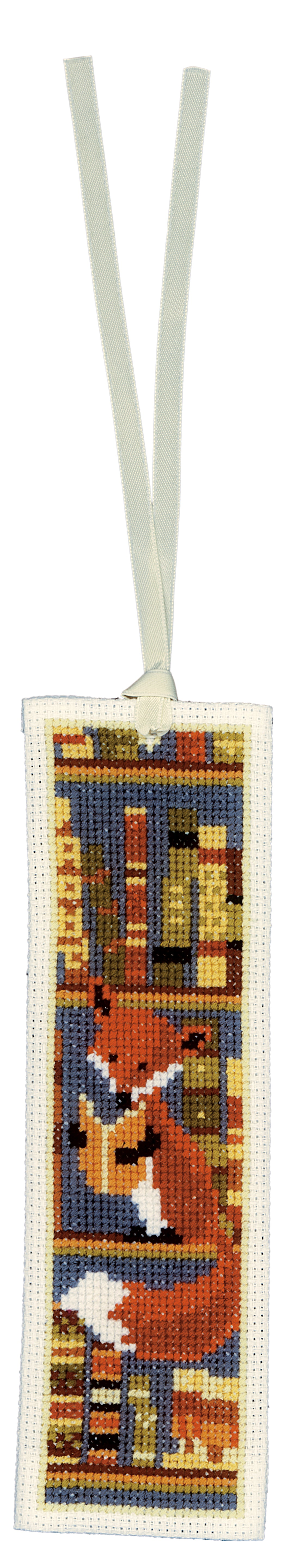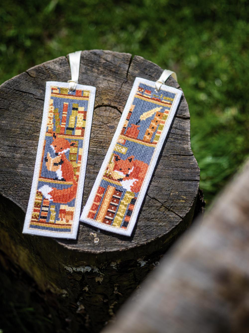 Counted Cross Stitch Kit Bookmark ~ Foxes in Bookshelf Set of 2