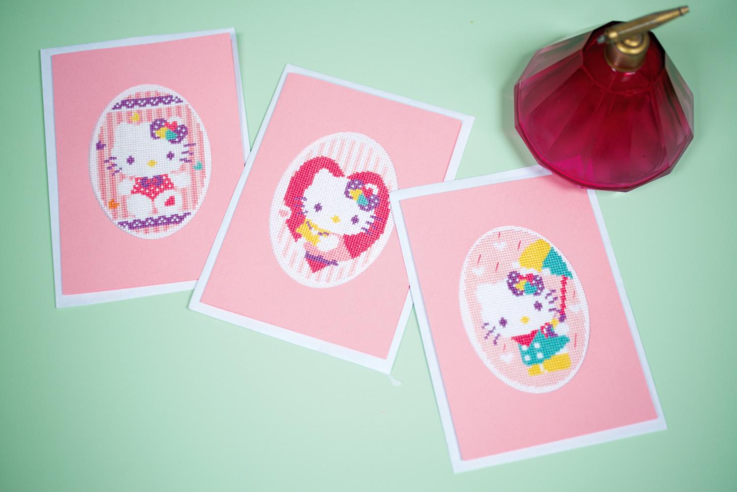 Greetings Cards Counted Cross Stitch Kit ~ Hello Kitty Pastels Set of 3