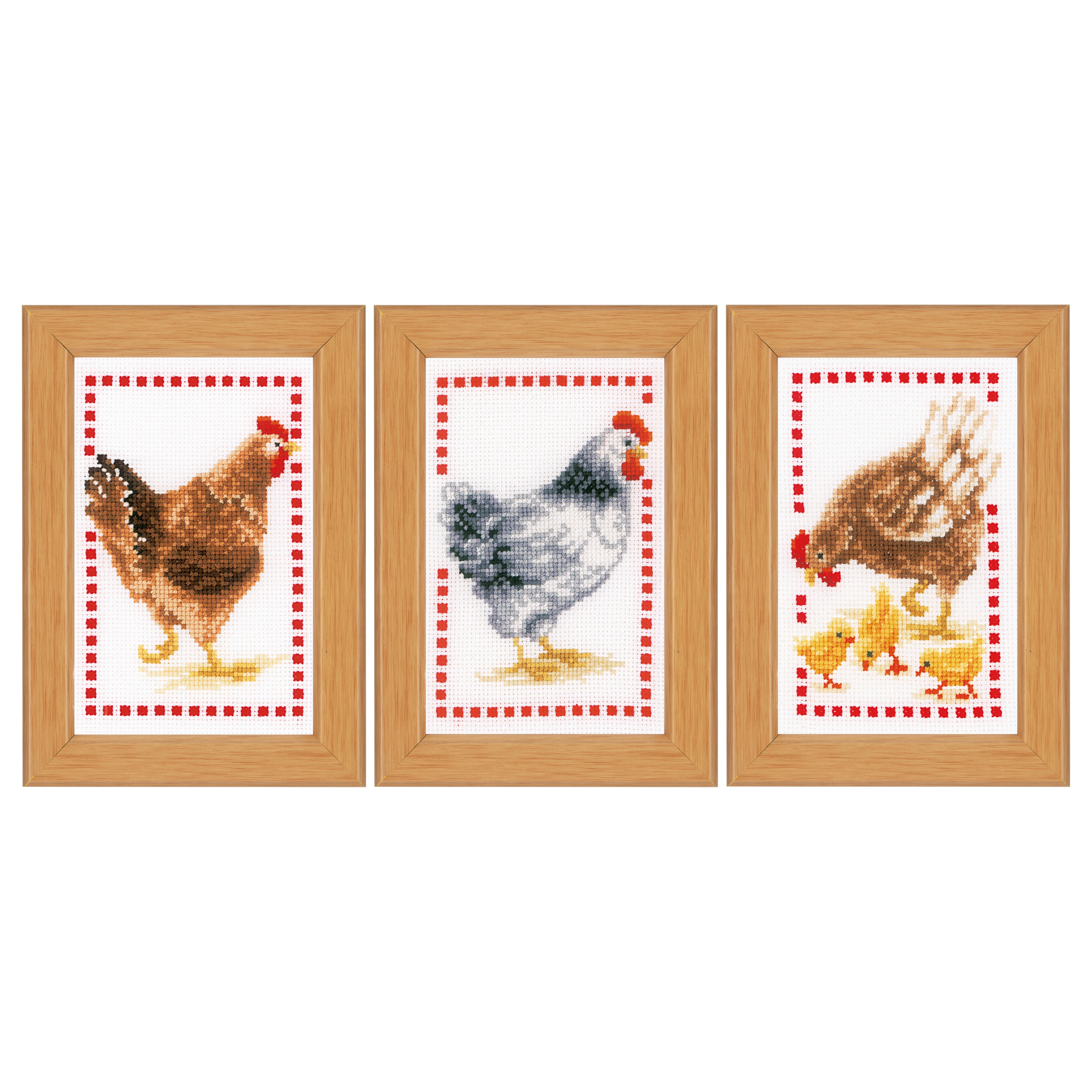 Counted Cross Stitch Kit ~ Miniatures Chickens Set of 3