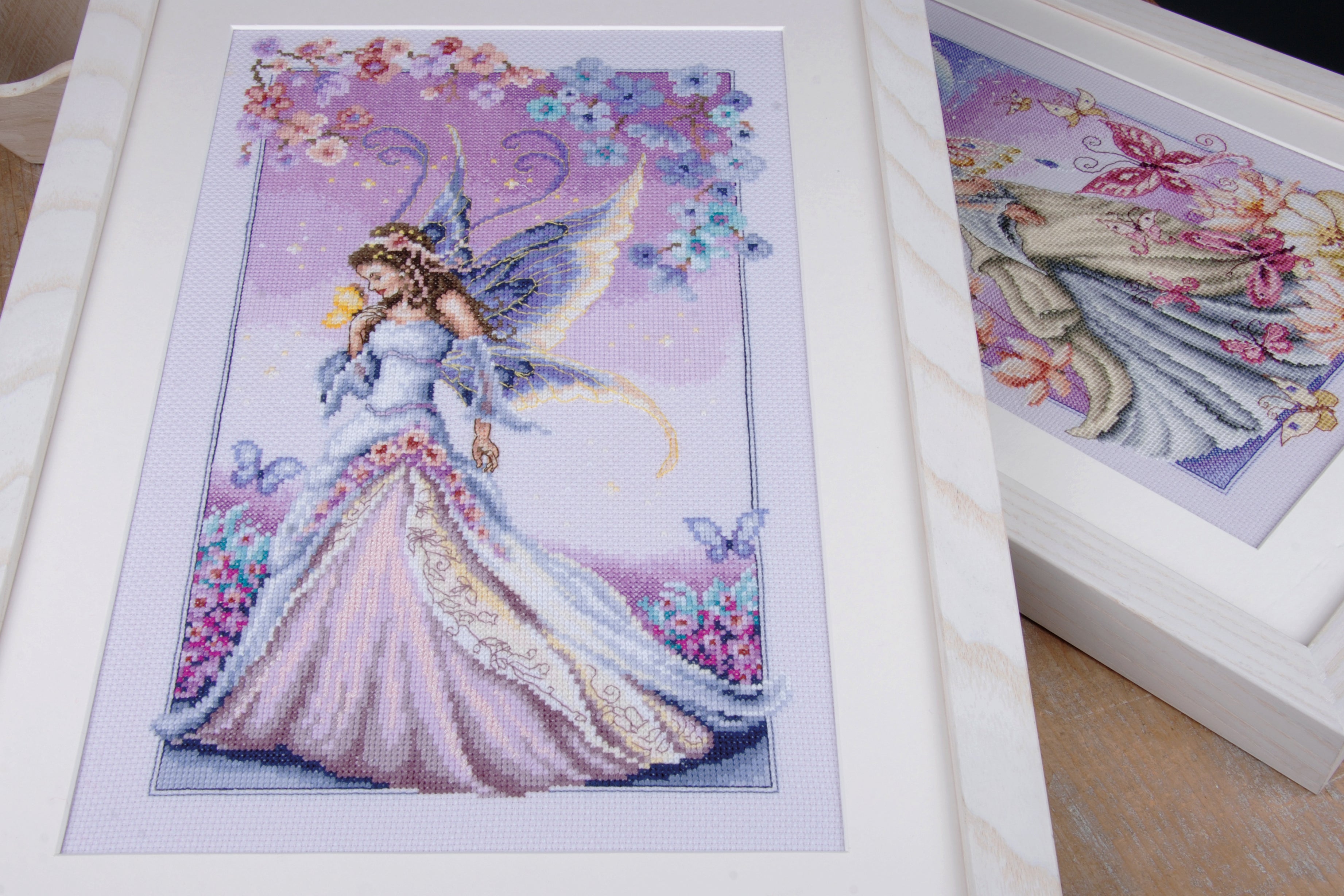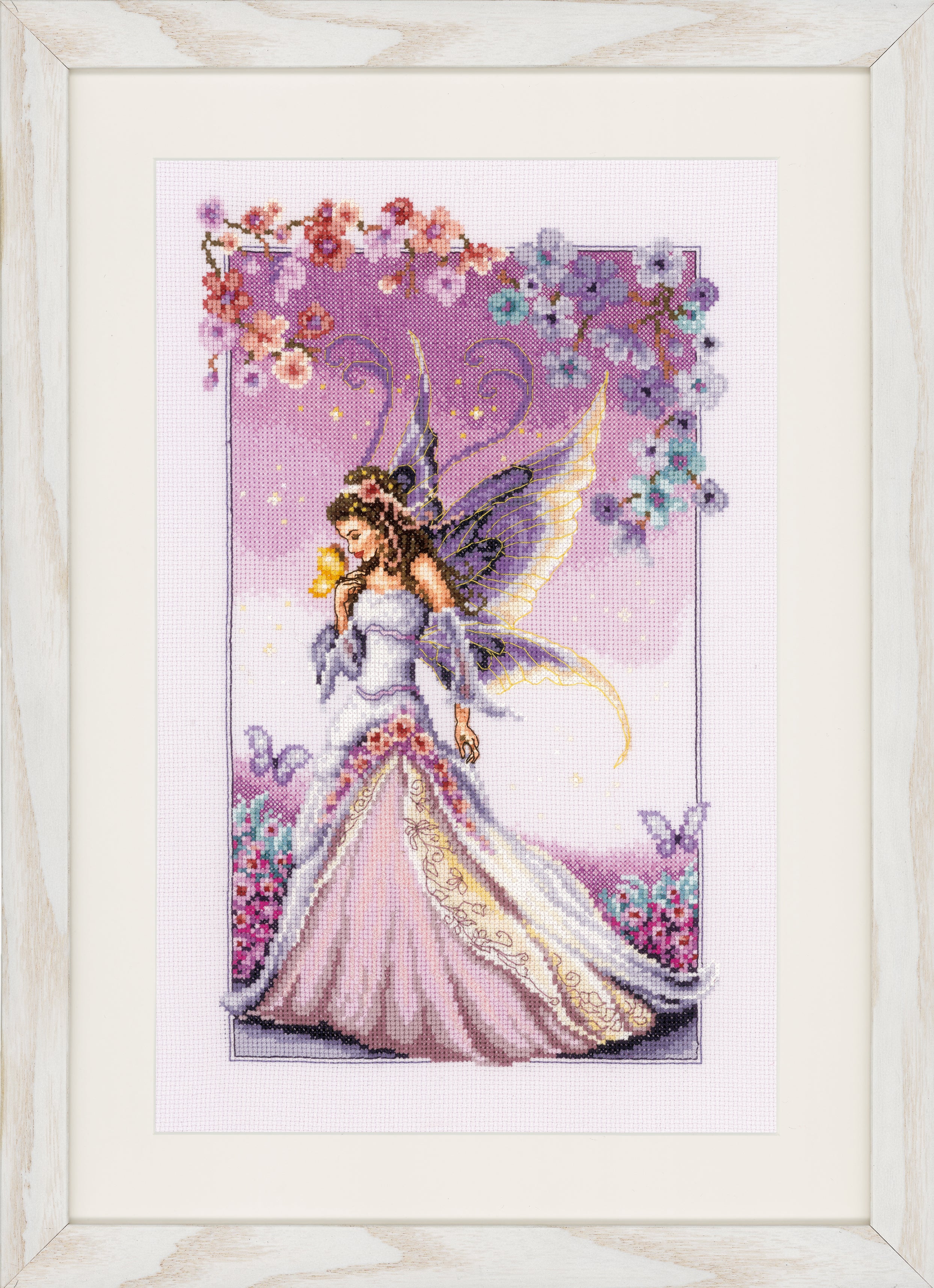 - Kit includes: 14 count, purple, cotton, aida fabric; pre-sorted cotton and metallic threads; needle; large-square charted design; front sheet picture and instructions in 8 languages (EN, NL, FR, GER, IT, SP, RU, SW).