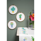 - Counted cross stitch design with hoop.