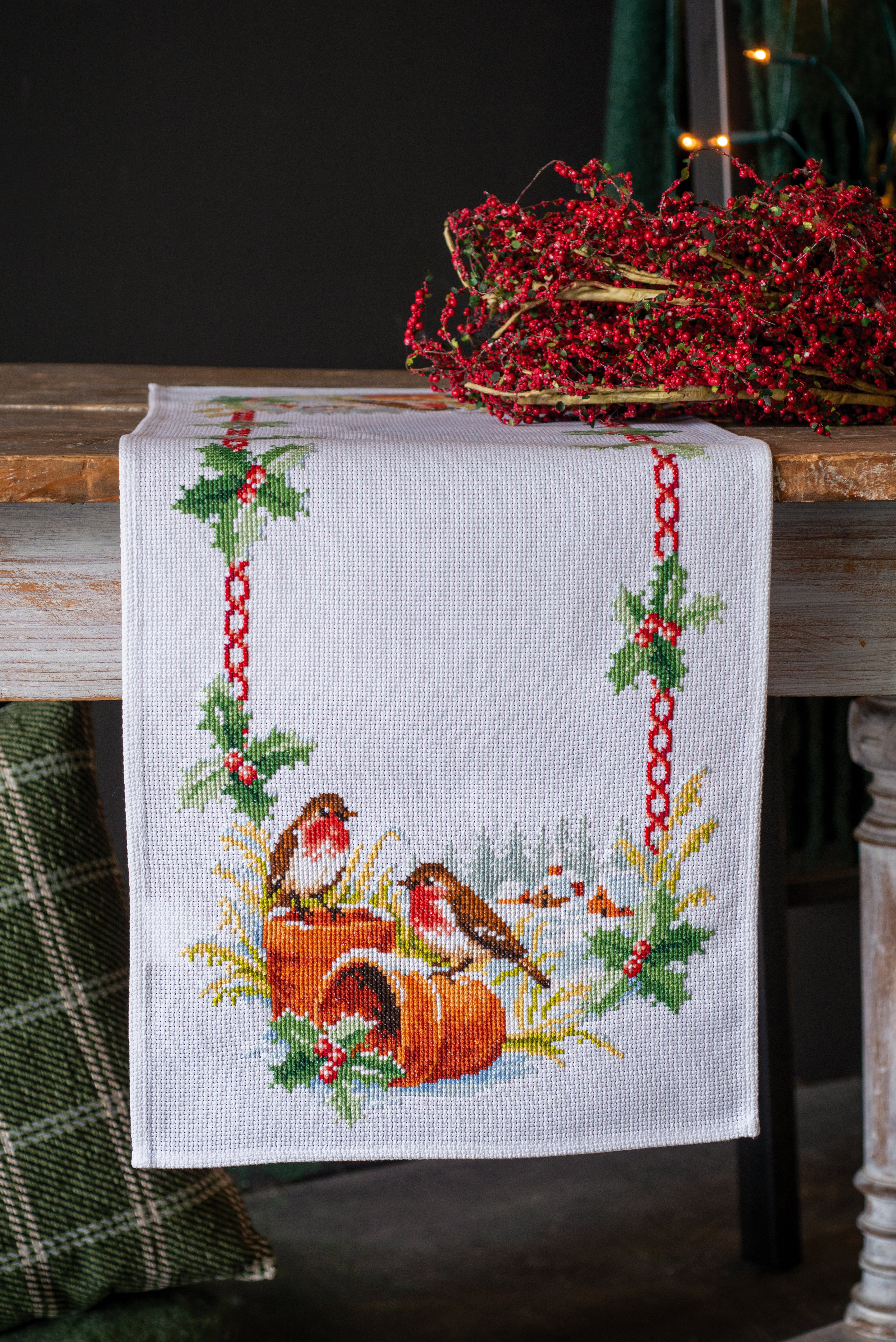 Cross Stitch Kit Table Runner ~ Aida Robins in Winter