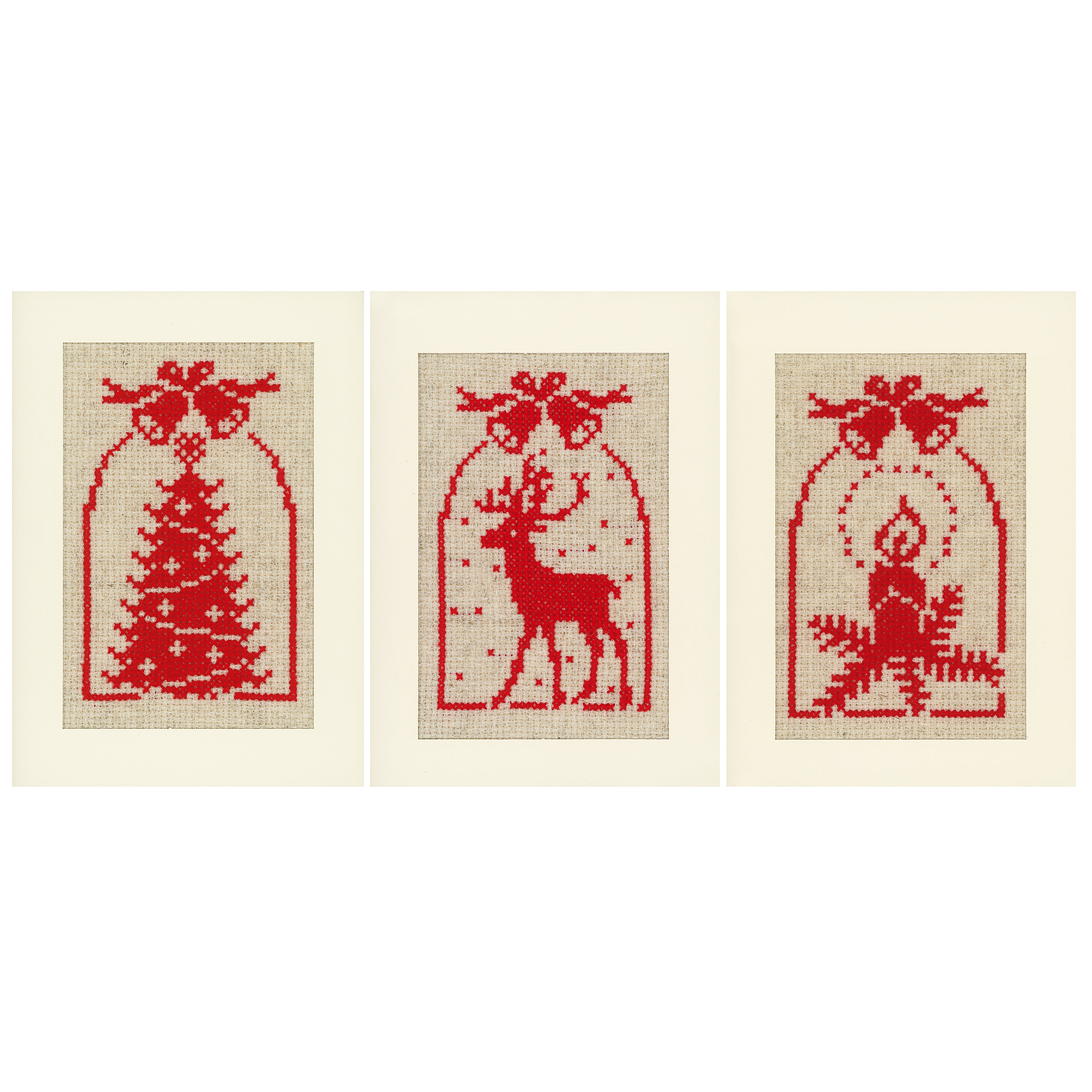 Greeting Card Counted Cross Stitch Kit ~ Christmas Symbols Set of 3