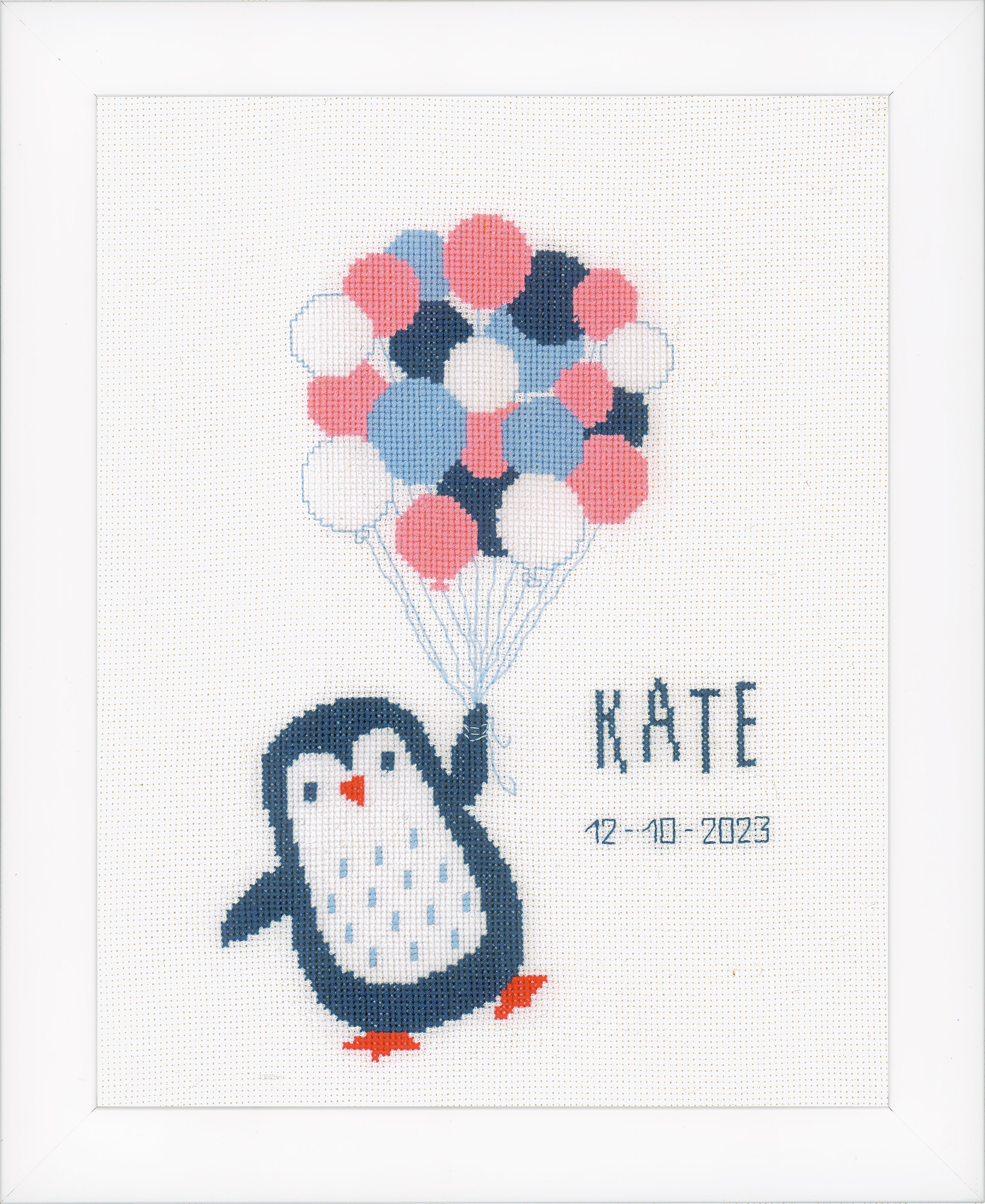 Birth Record Counted Cross Stitch Kit ~ Hello Penguin