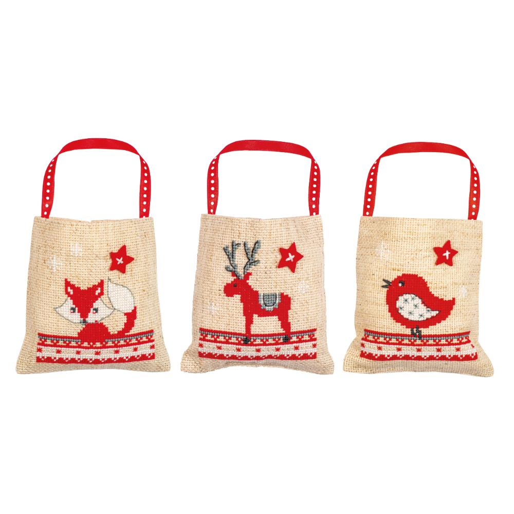 Counted Cross Stitch Kit Draw String Gift Bags ~ Christmas Animals Set of 3
