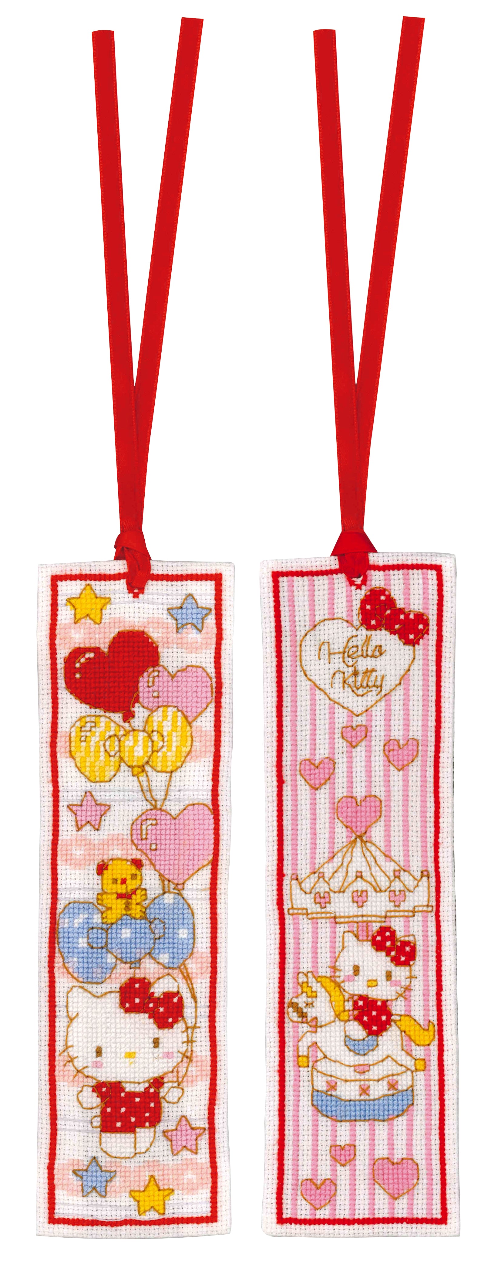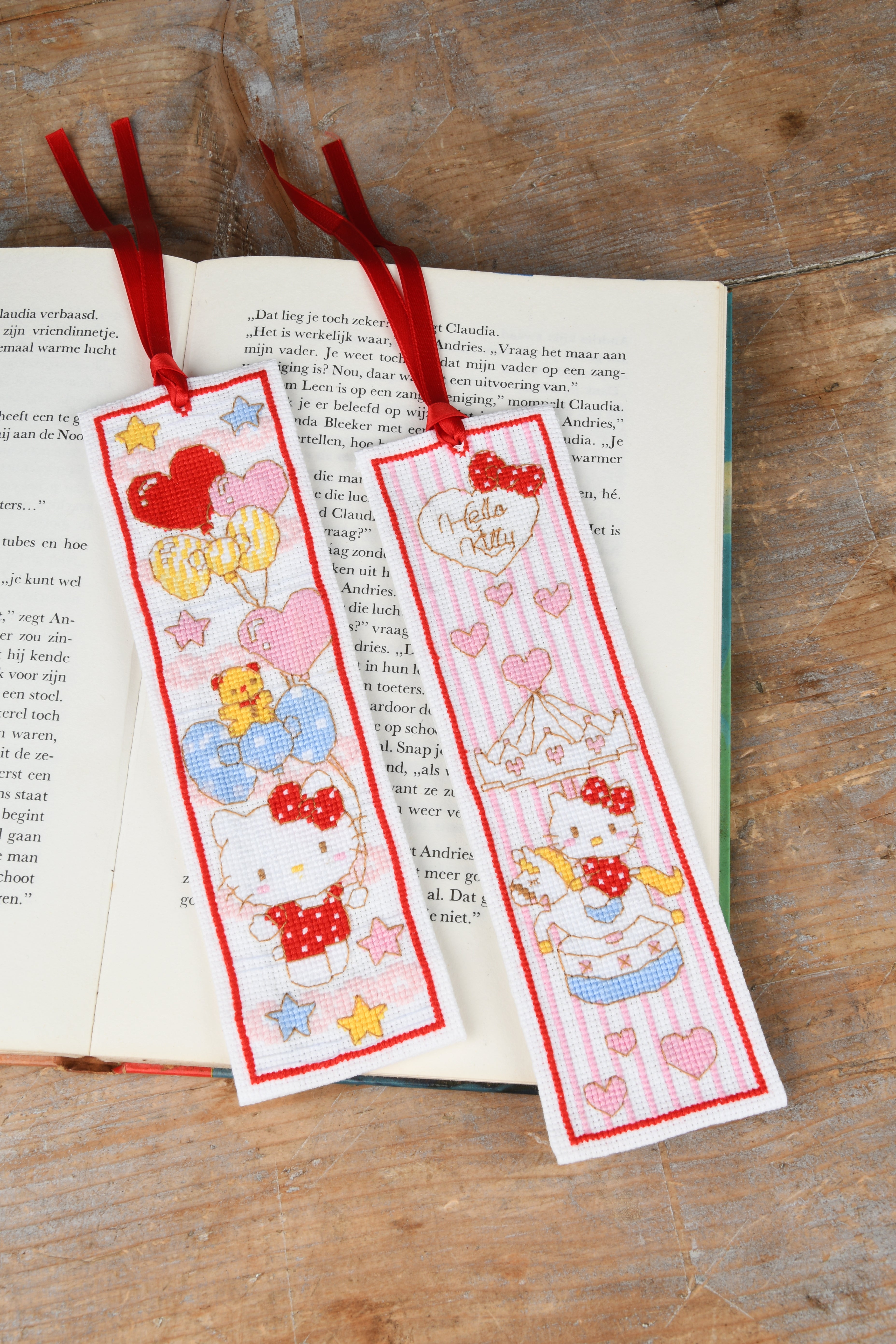 Counted Cross Stitch Kit Bookmark ~ Hello Kitty Doodle Heart Set of 2