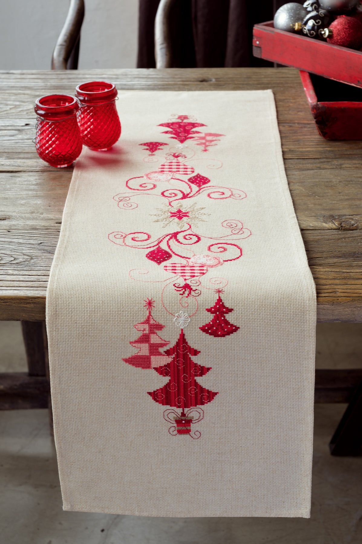 - Printed design to be stitched with pre-sorted cotton threads onto ecru, 60% polyester/40% cotton linen-look, aida fabric with hemmed border. Kit also includes instructions, large-square design, needle, front sheet picture.