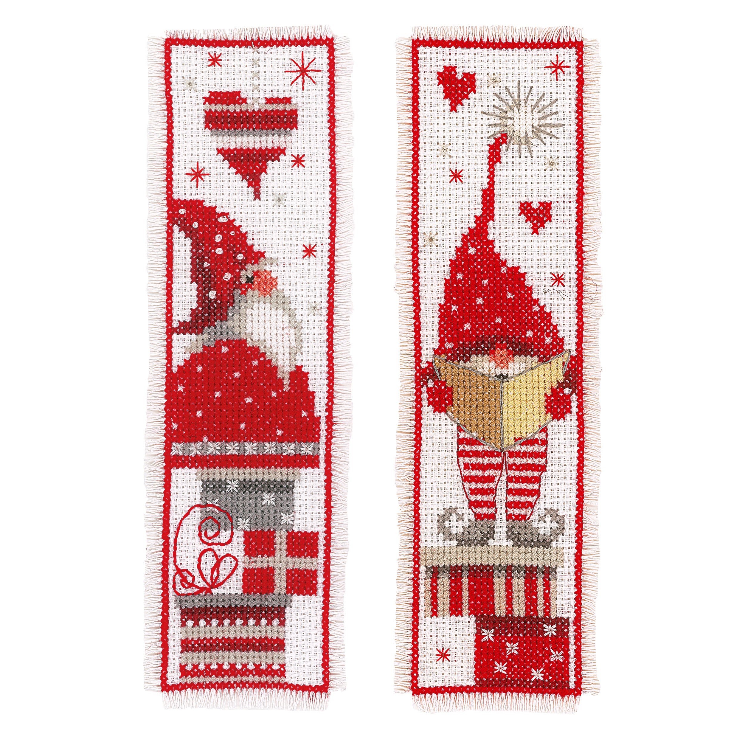 Bookmarks Counted Cross Stitch Kit ~ Christmas Gnomes Set of 2