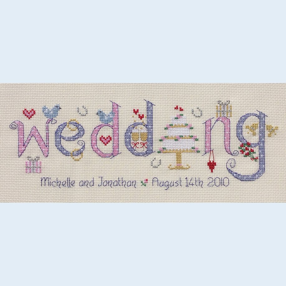 A lovely sampler to celebrate a wedding day, full of images associated with that special day.