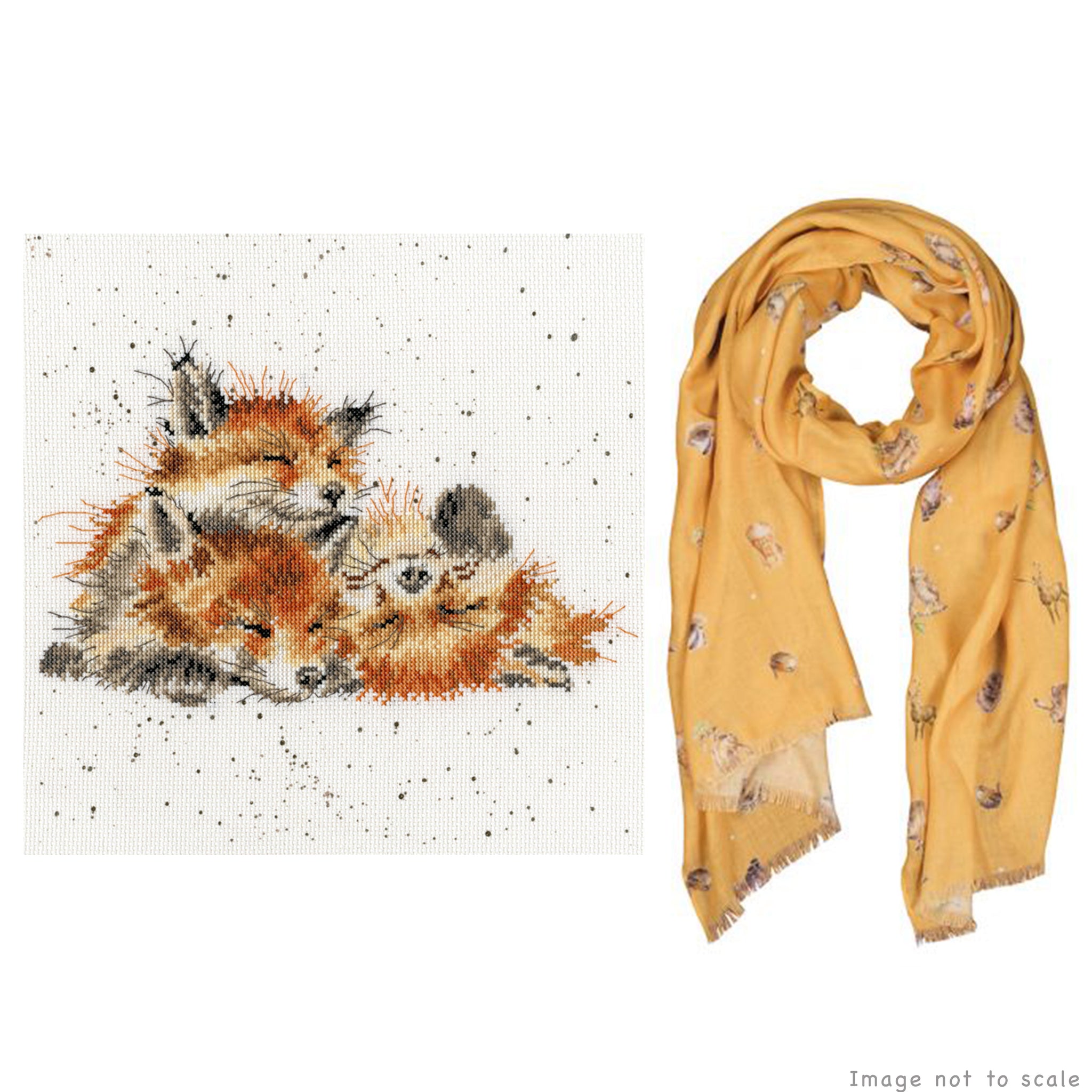 Afternoon Nap Gift Set - Cross Stitch Kit, and Mustard Woodland Scarf