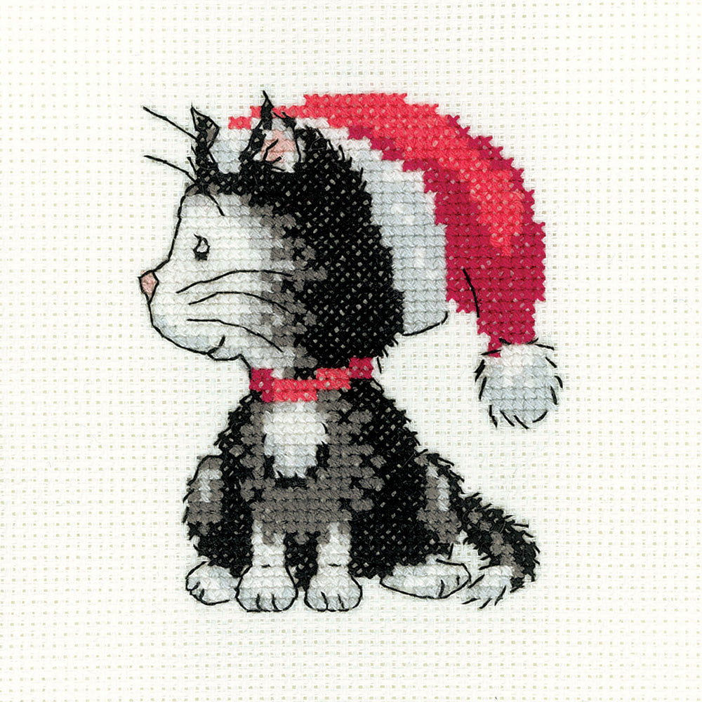 Heritage Crafts ~ Counted Cross Stitch Kit ~ Peter Underhill ~ Simply Heritage ~ Black and White Christmas Kitten