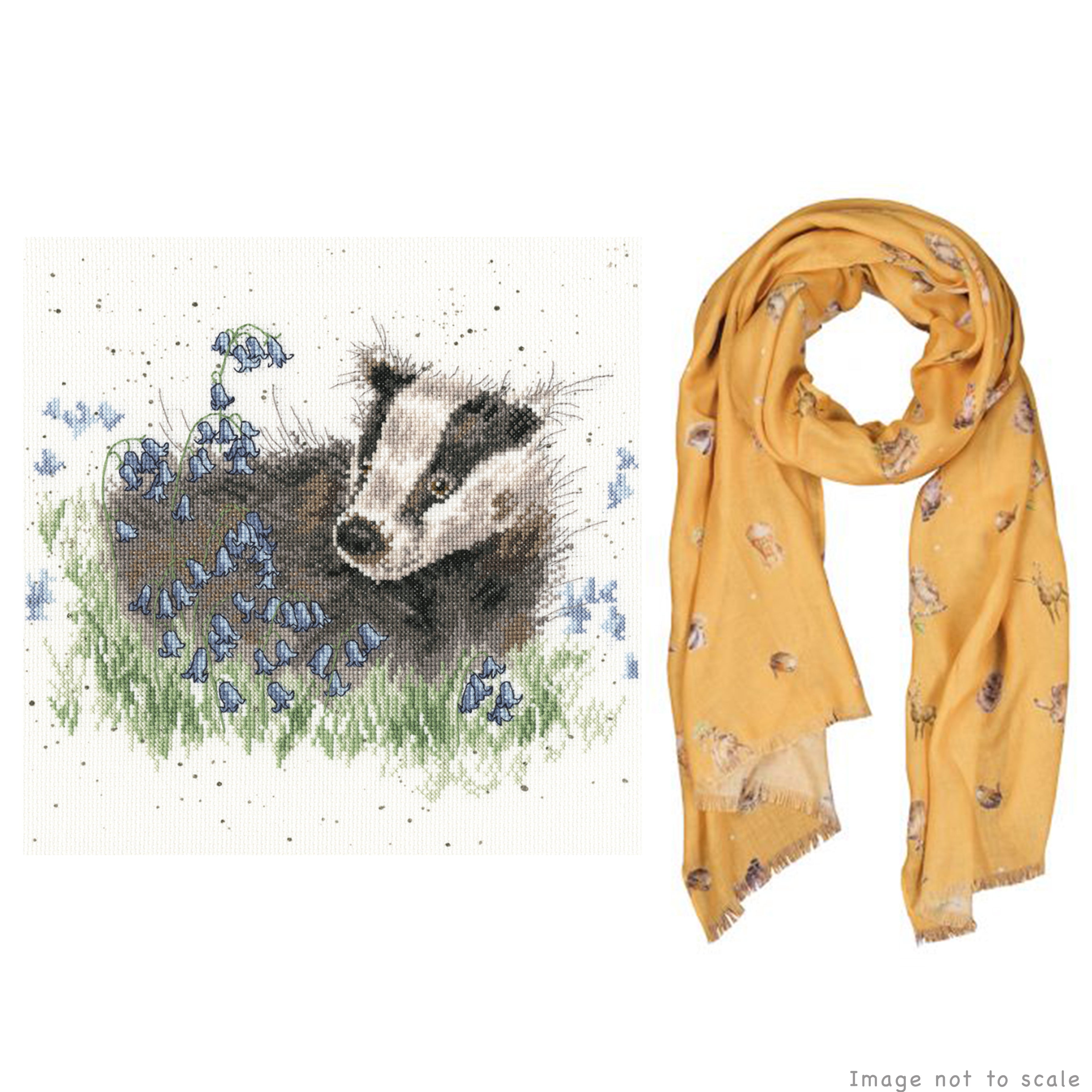 Bluebell Wood Gift Set - Cross Stitch Kit, and Mustard Woodland Scarf