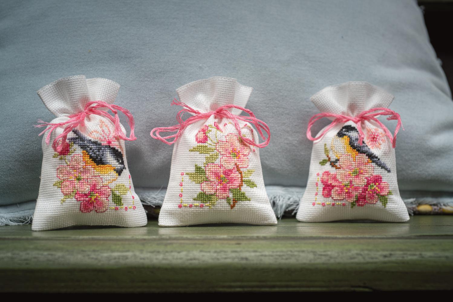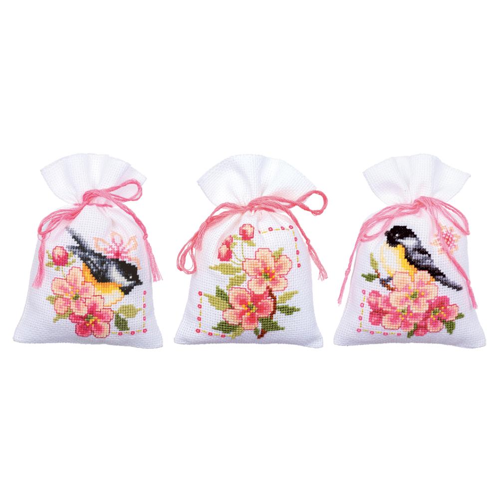 Counted Cross Stitch Kit ~ Gift Bags Birds and Blossoms Set of 3