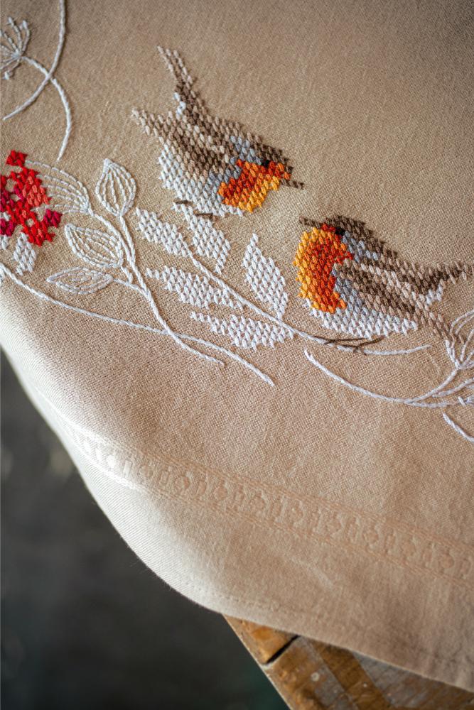 Tablecloth Embroidery Kit ~ Robins in Winter