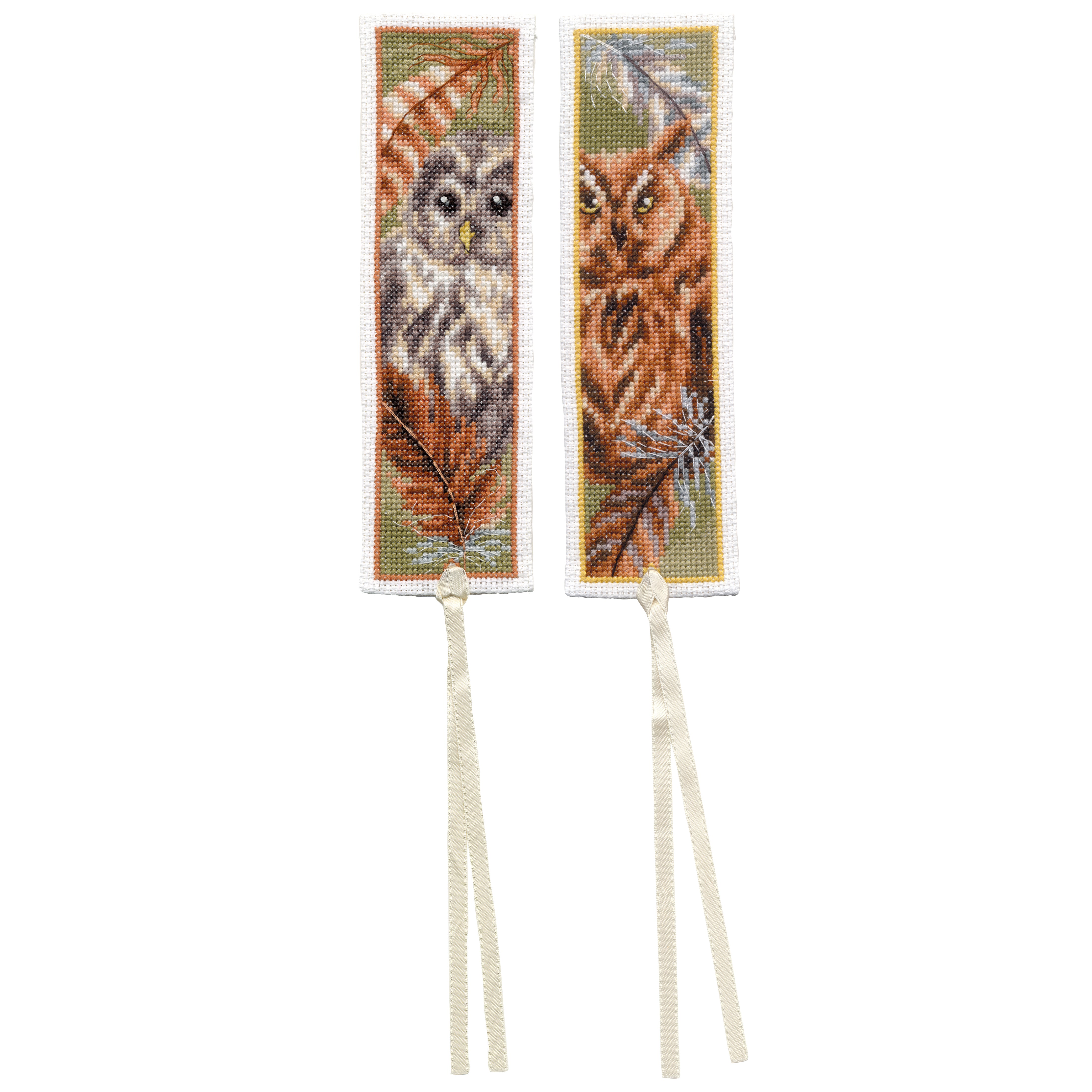 Counted Cross Stitch Kit Bookmark ~ Owl with Feathers Set of 2