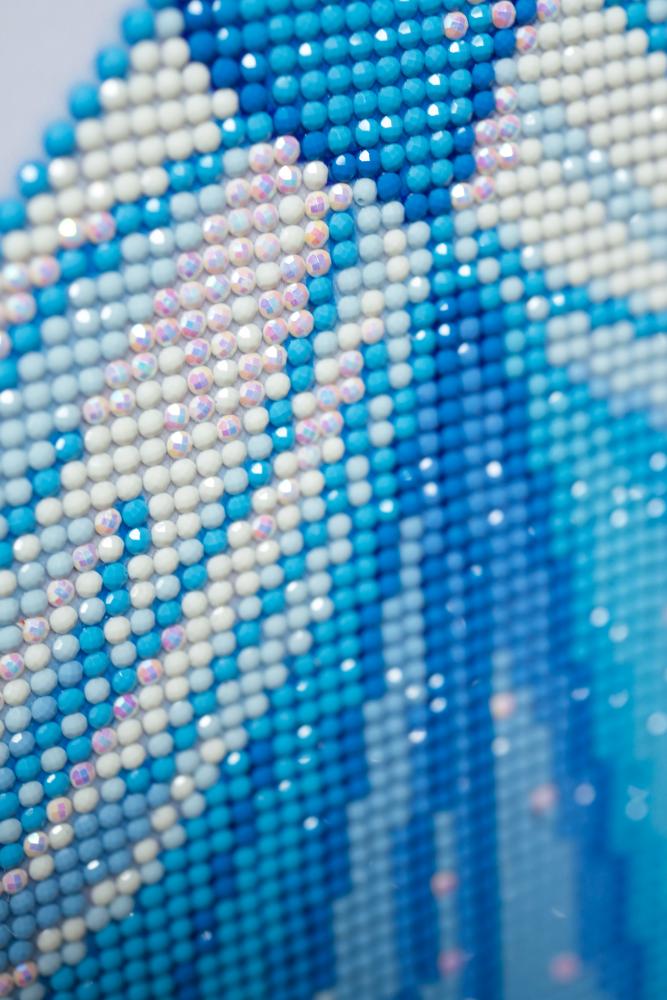 - Kit includes: high quality colour printed, 100% polyester fabric; diamond-like facets pre-sorted by number; plastic bags for storing sorted 'diamonds'; 'diamond' applicator tool, craft tray and wax caddy; instructions.