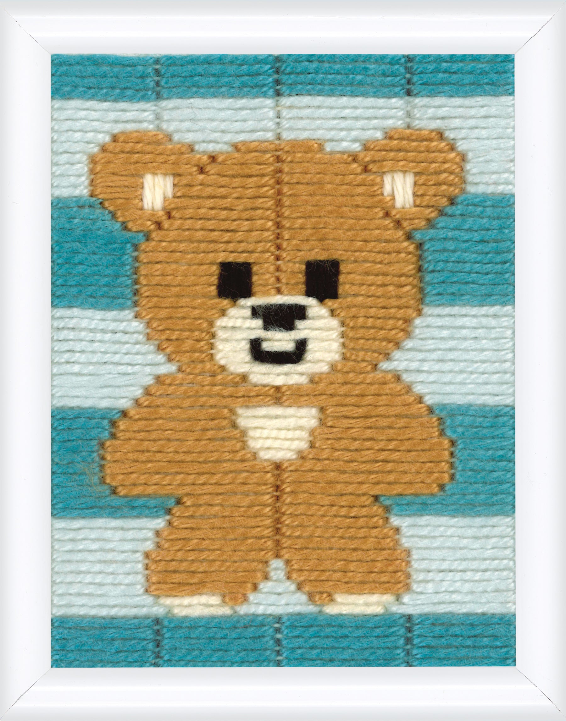 - Kit includes: printed, white, cotton canvas (34 holes/10cm - 8.5 stitches/inch); acrylic yarn; needle; chartered design; front sheet picture; instructions in 8 languages (EN, NL, FR, GER, IT, SP, RU, SW).