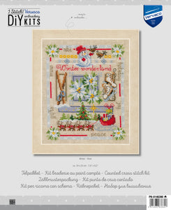 - Kit includes: 14 count, white, 60% polyester, 40% linen aida fabric; pre-sorted, stranded cotton threads; needle; large-square charted design; front sheet picture and instructions in 8 languages (EN, NL, FR, GER, IT, SP, RU, SW).
