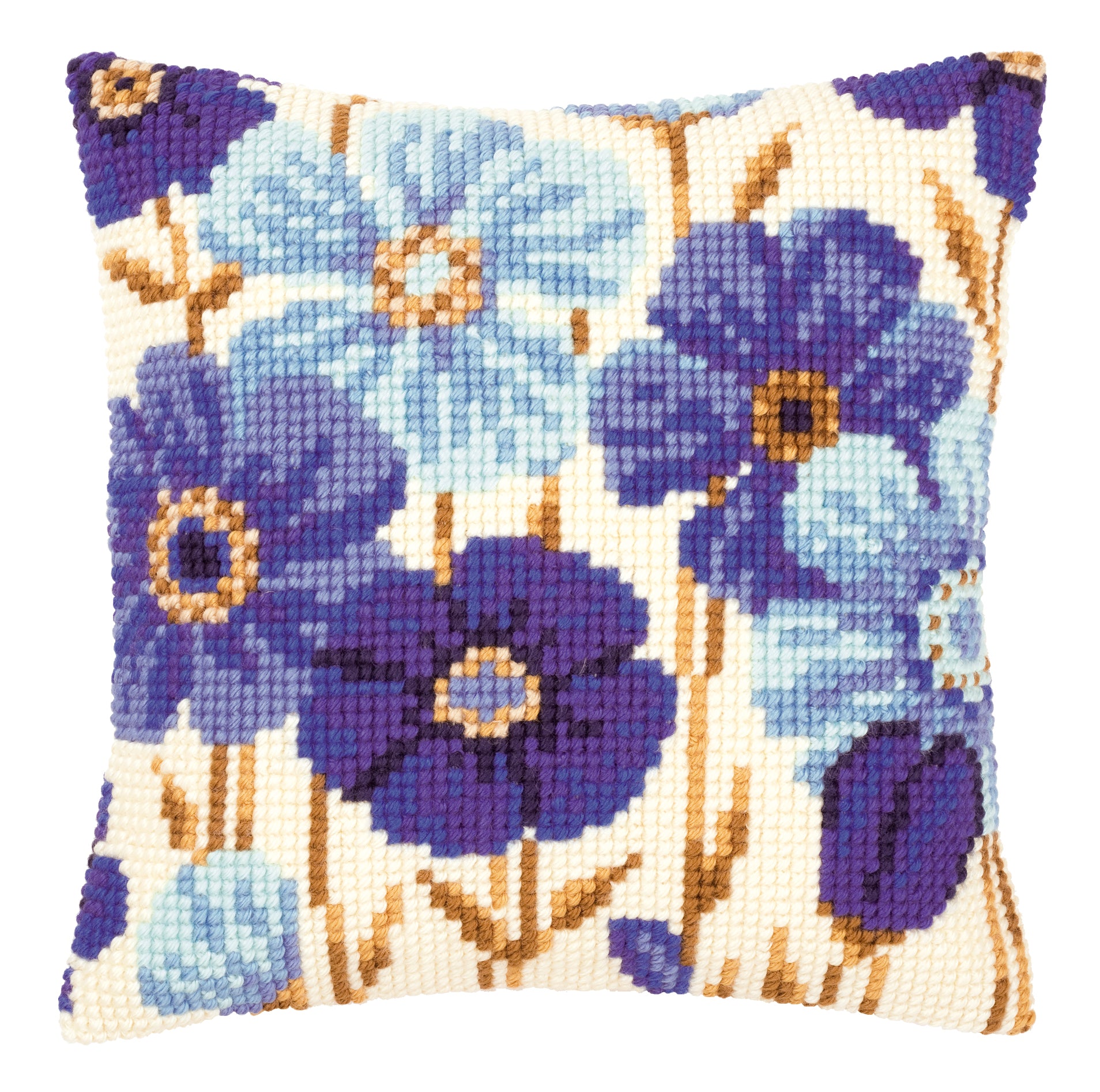 Cushion Cross Stitch Kit ~ Blue Flowers