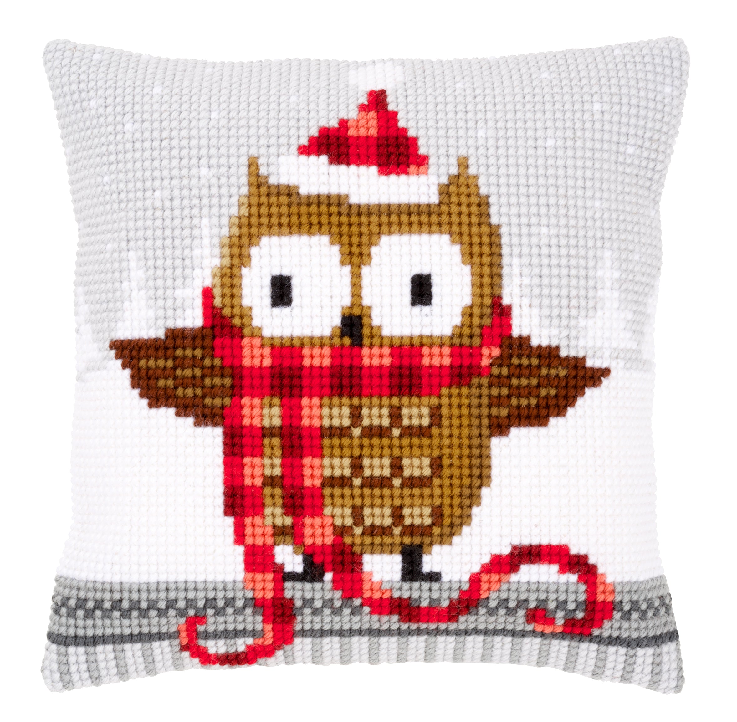 Cushion Cross Stitch Kit ~ Owl in Santa Hat