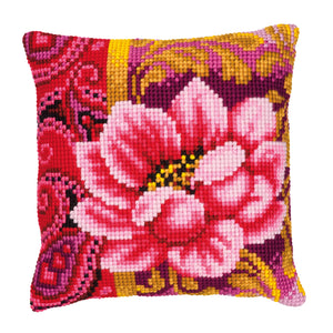 Vervaco ~ Cross Stitch Cushion Front Kit ~ Pink Flower