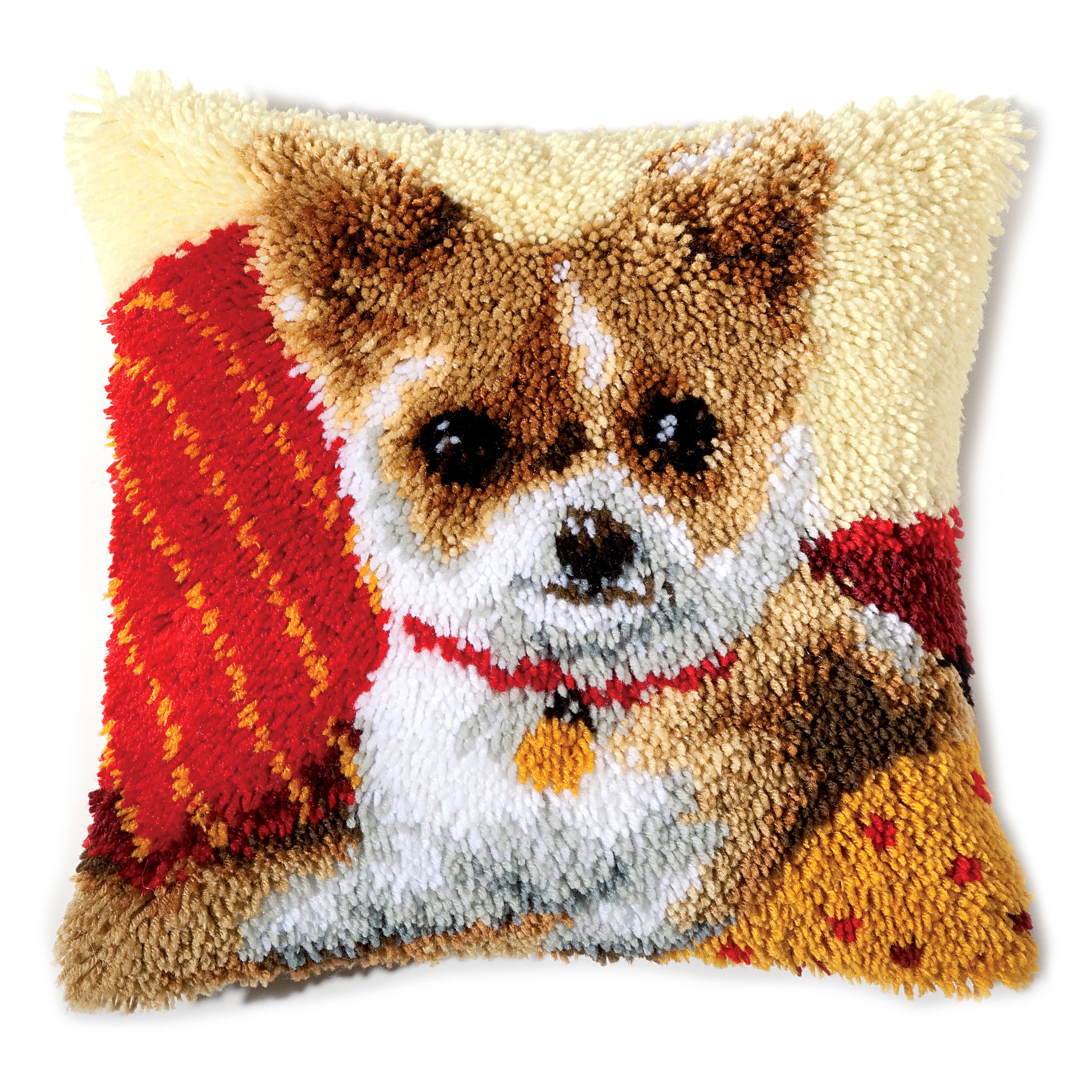 - Kit includes: hand painted, 52% cotton/48% polyester, large hole (18 holes/10cm, 4.5 stitches /inch) canvas; cut packs of acrylic yarn; latch hook; front sheet picture and instructions in 8 languages (EN, NL, FR, GER, IT, SP, RU, SW).
