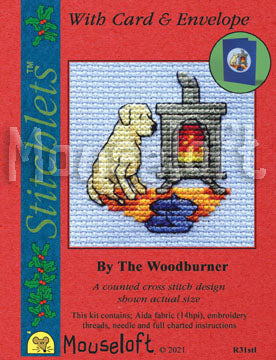Mouseloft ~ Counted Cross Stitch Kit ~ Stitchlets ~ Christmas Card ~ Dog by the Wodburner