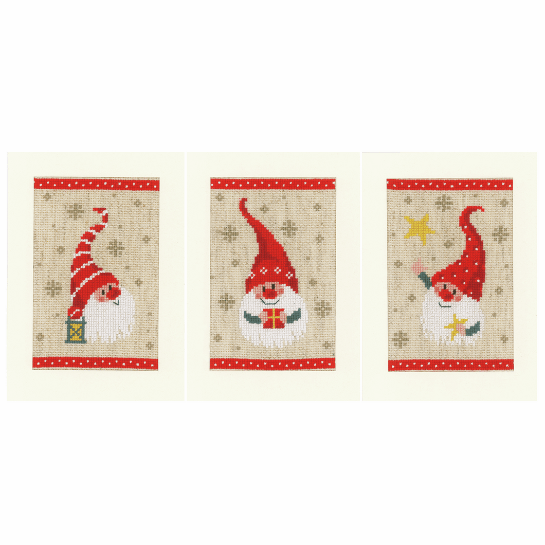 Vervaco ~ Counted Cross Stitch Kit ~ Christmas Card ~ Gnomes ~ Set of 3