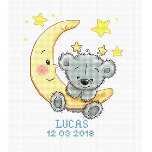 Luca-S ~ Counted Cross Stitch Kit ~ Birth Record ~ Lucas Teddy Bear Sampler
