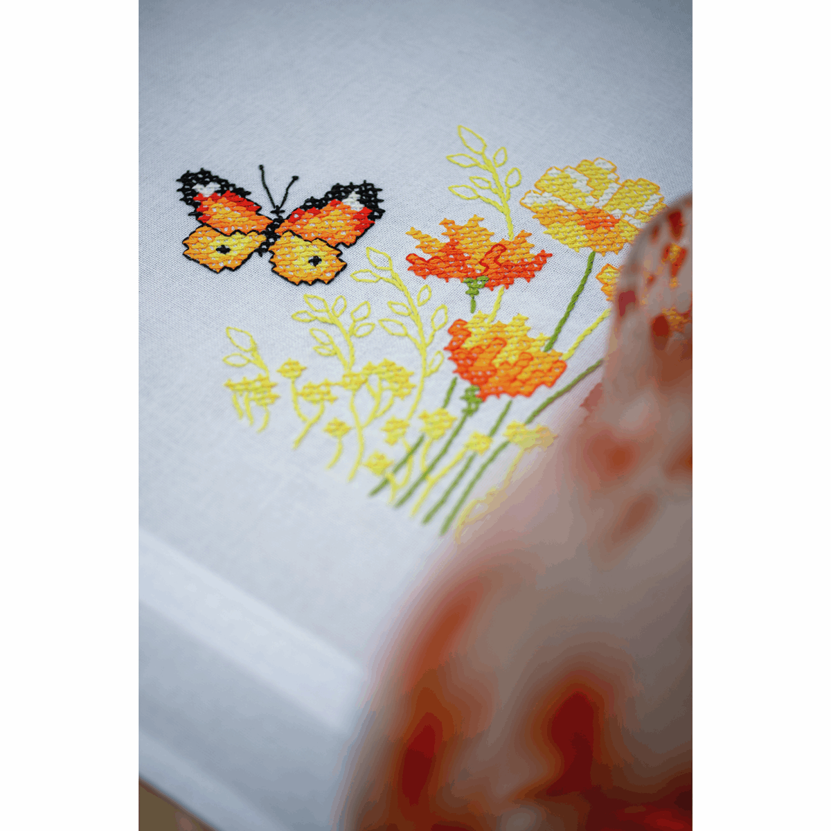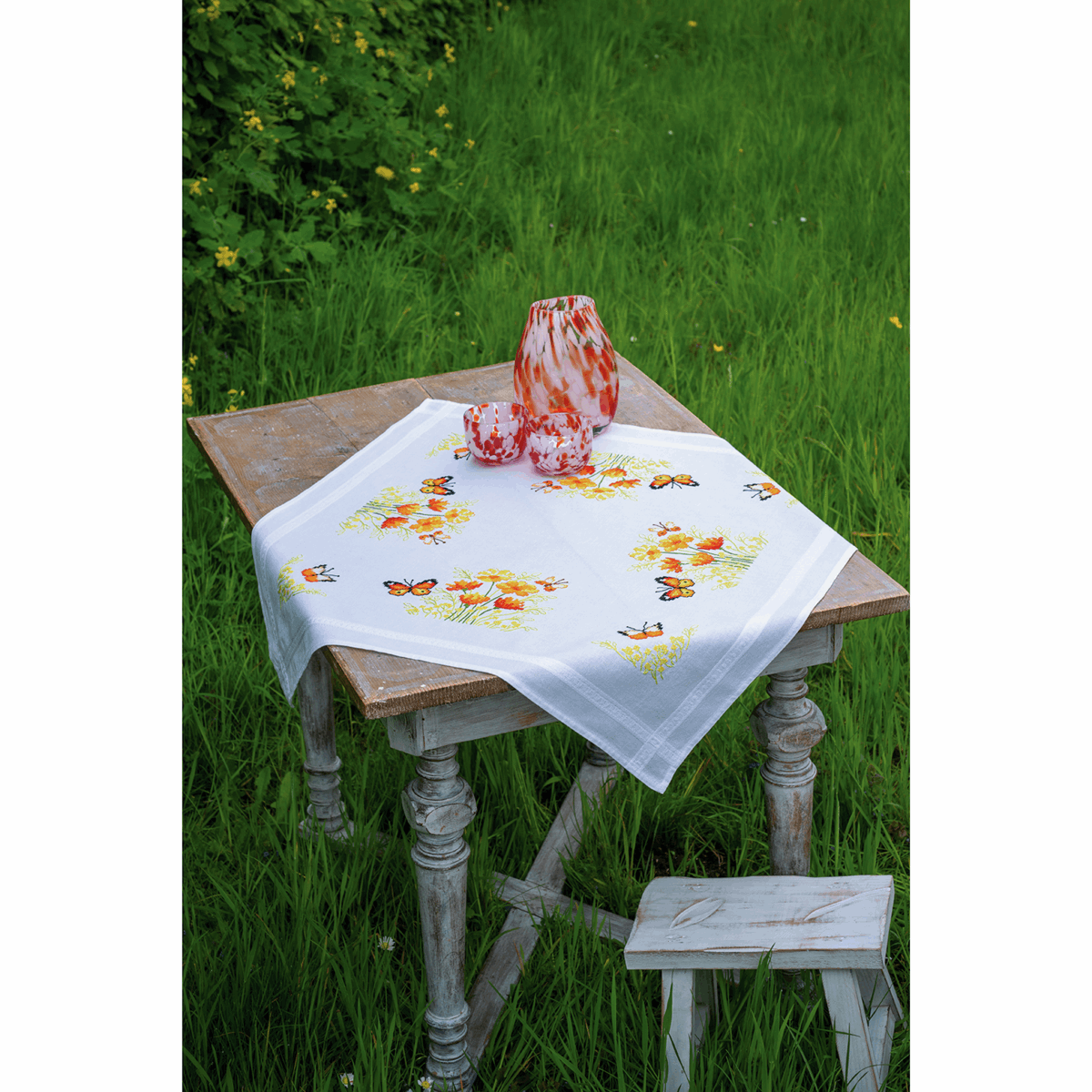 Vervaco ~ Embroidery Kit ~ Tablecloth ~ Orange Flowers and Butterflies