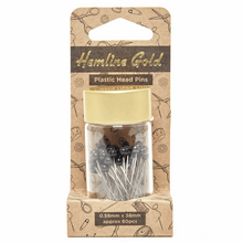 Hemline ~ Pins ~ Plastic Head ~ Nickel Plated Steel ~ Black ~ 60 Pieces