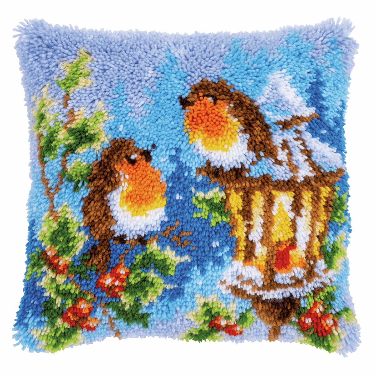 Vervaco ~ Latch Hook Cushion Front Kit ~ Robins with Christmas