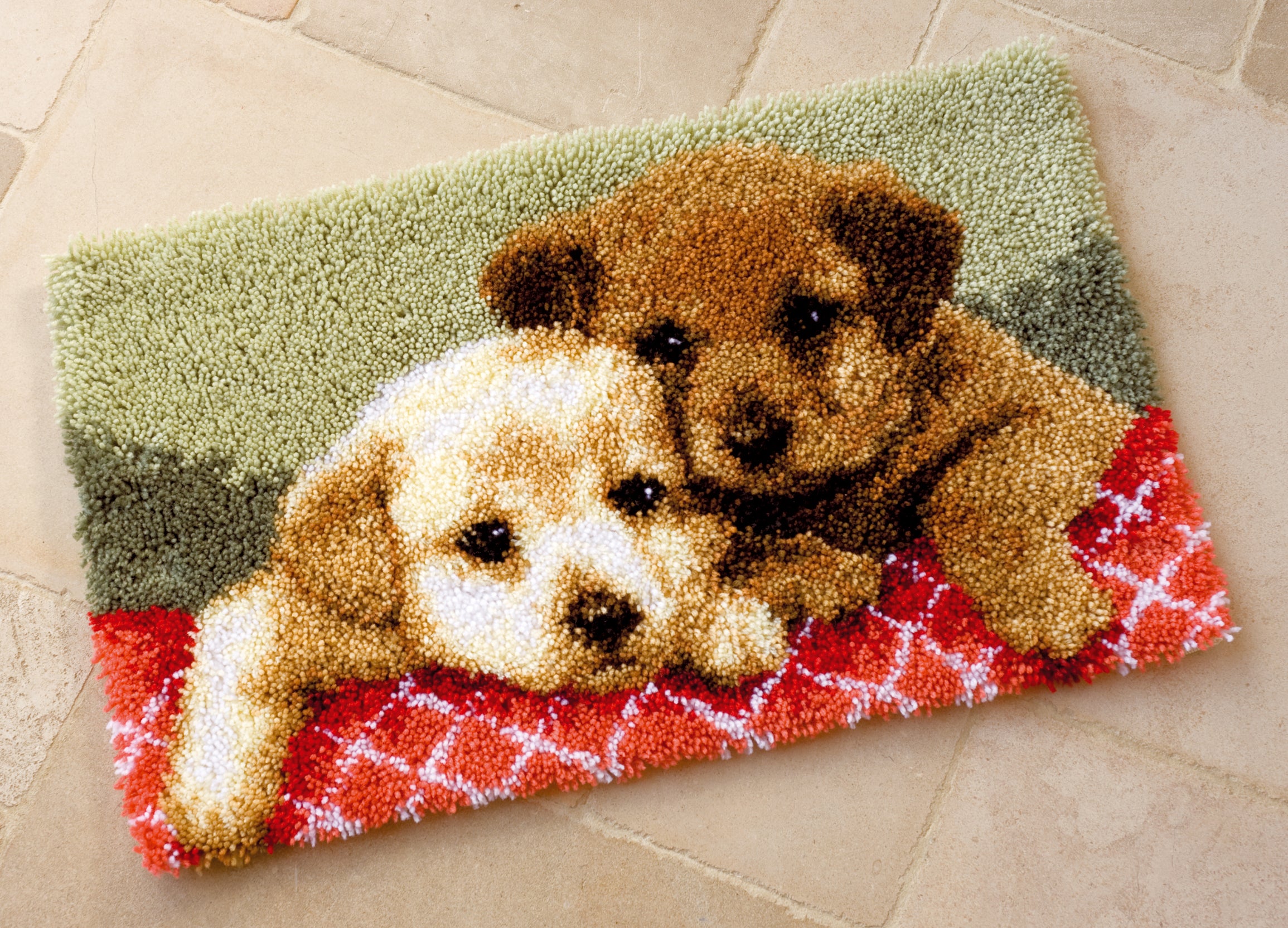 - Kit includes: hand painted, 52% cotton/48% polyester, large hole (18 holes/10cm, 4.5 stitches /inch) canvas; cut packs of acrylic yarn; latch hook; front sheet picture and instructions in 8 languages (EN, NL, FR, GER, IT, SP, RU, SW).