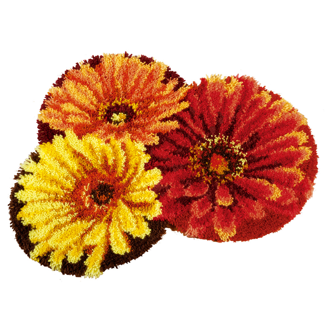 - Kit includes: hand painted, 52% cotton/48% polyester, large hole (18 holes/10cm, 4.5 stitches /inch) canvas; cut packs of acrylic yarn; latch hook; front sheet picture and instructions in 8 languages (EN, NL, FR, GER, IT, SP, RU, SW).