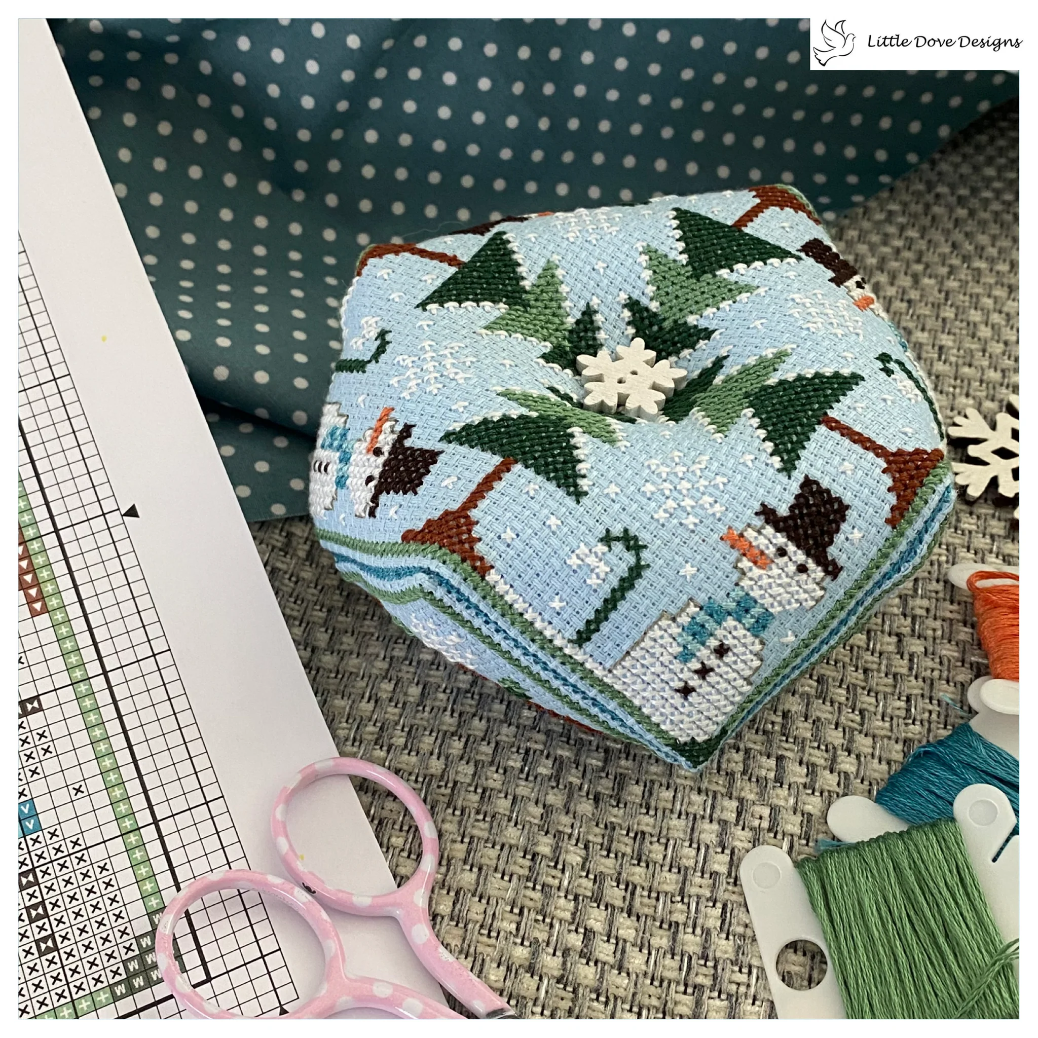 Little Dove Designs ~ Counted Cross Stitch Kit ~ Biscornu ~ Winter Snowman